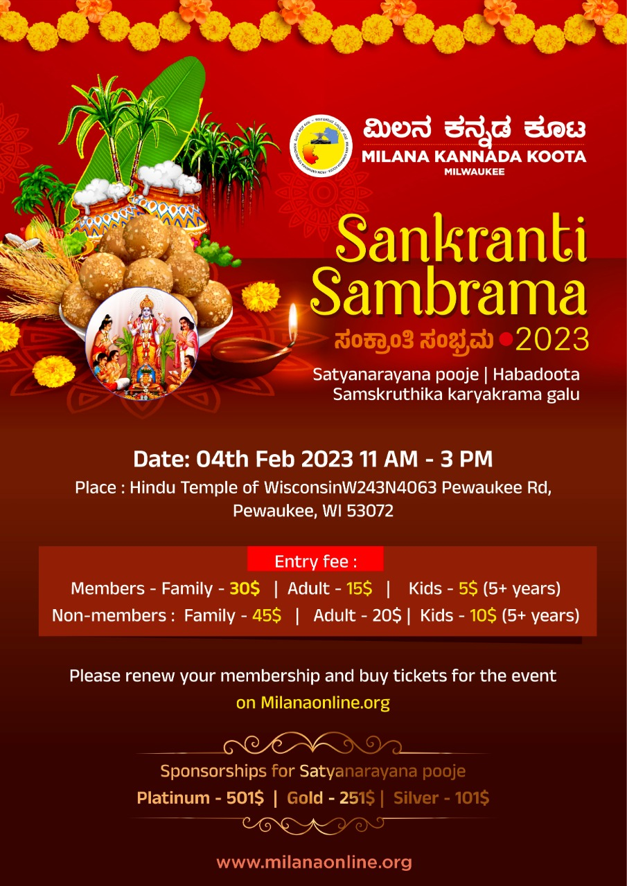 Request everyone to come, get Satyanarayana’s blessings and celebrate Makara Sankranti with fellow Kannadigas.